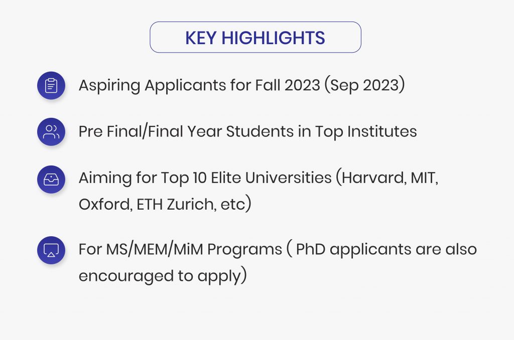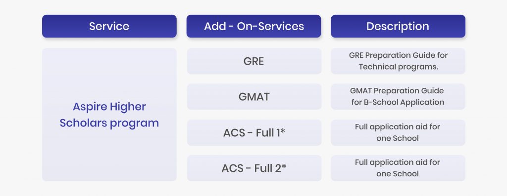 Sign up for the Aspire Higher Scholars Program to put your best foot forward. We will provide you with the toolkit needed to design your finest graduate school application in 6 months, with advice from a team of Admissions Consulting professionals who have helped thousands get into programs of their choosing abroad.